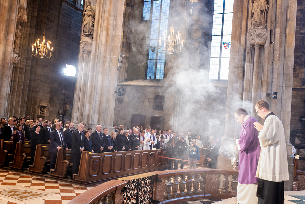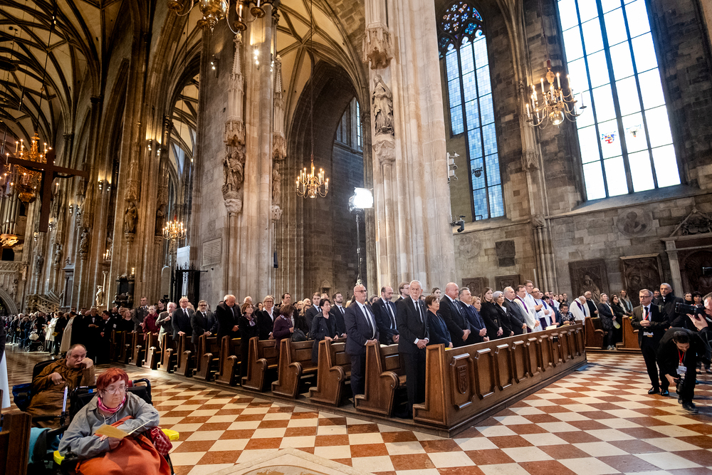 Mit einem "Requiem für seine Heiligkeit Papst Franziskus" nahm Österreich am Montagabend offiziell Abschied vom Papst. Dem Gottesdienst stand der Vorsitzende der Österreichischen Bischofskonferenz, Erzbischof Franz Lackner vor. Mit ihm konzelebrierten die heimischen Bischöfe. Die Politik war an erster Stelle von Bundespräsident Alexander Van der Bellen und Bundeskanzler Christian Stocker vertreten. Zahlreiche Gläubige gaben dem Papst im vollen Dom ebenfalls die letzte Ehre