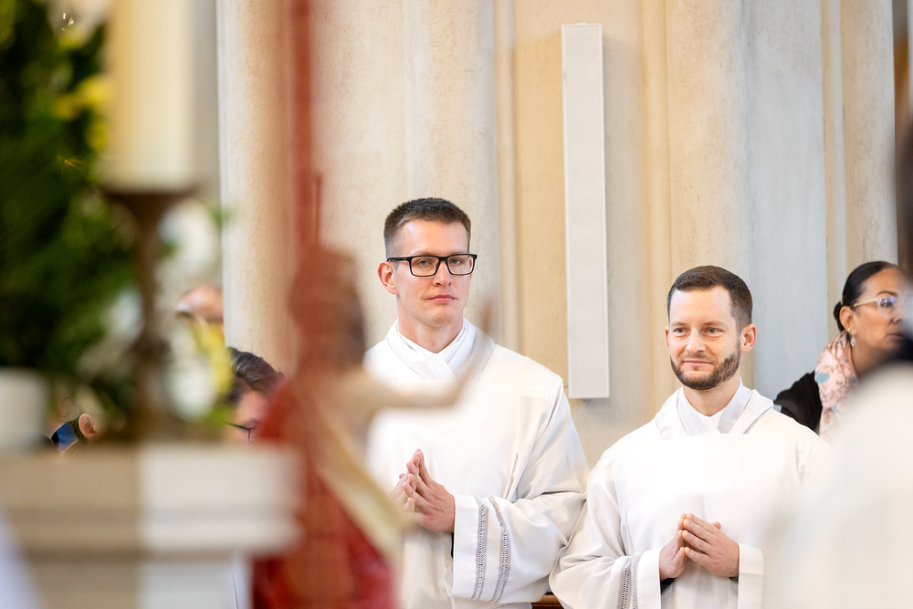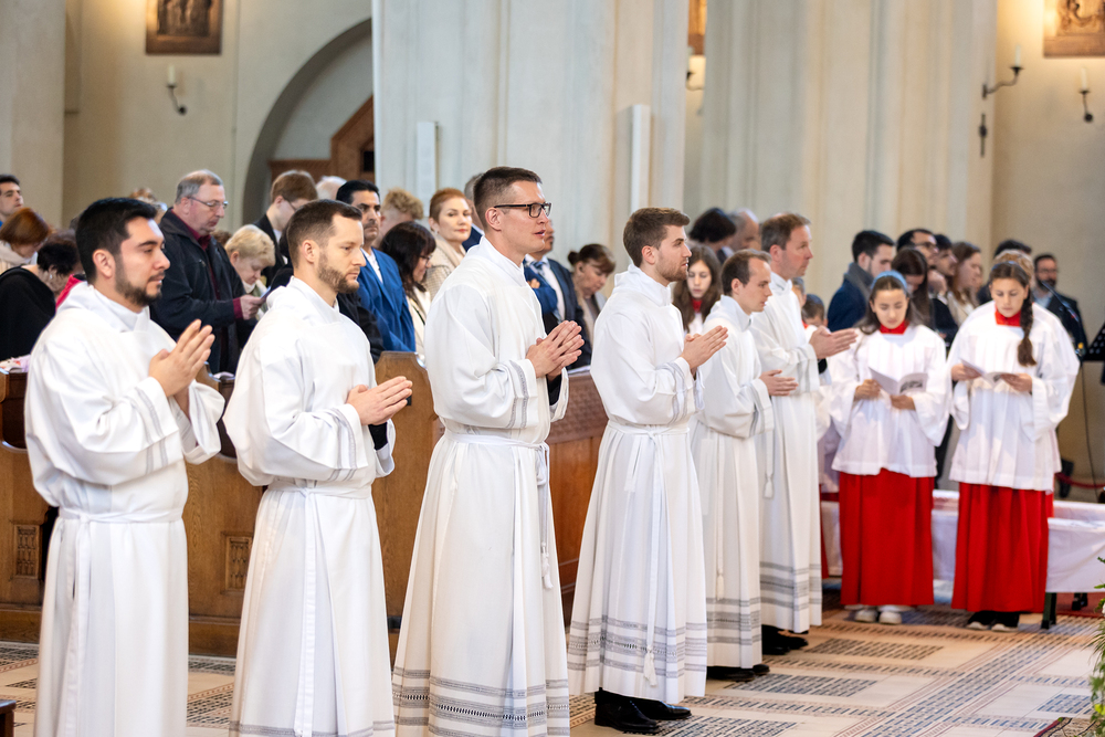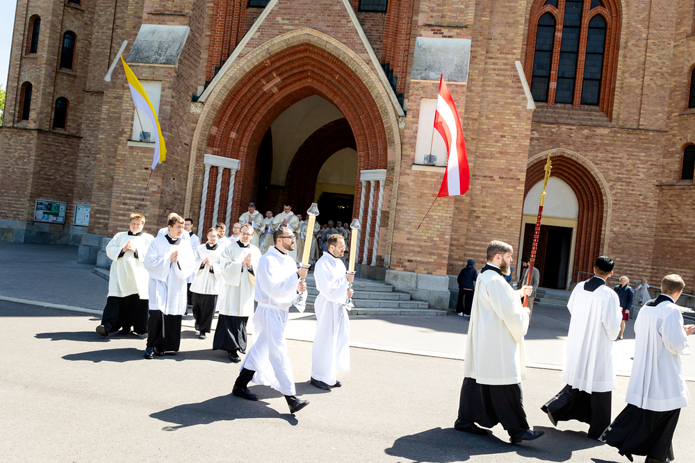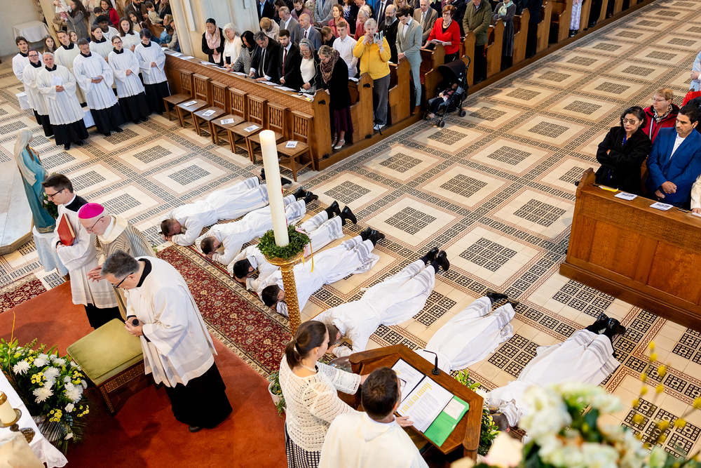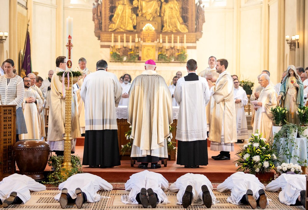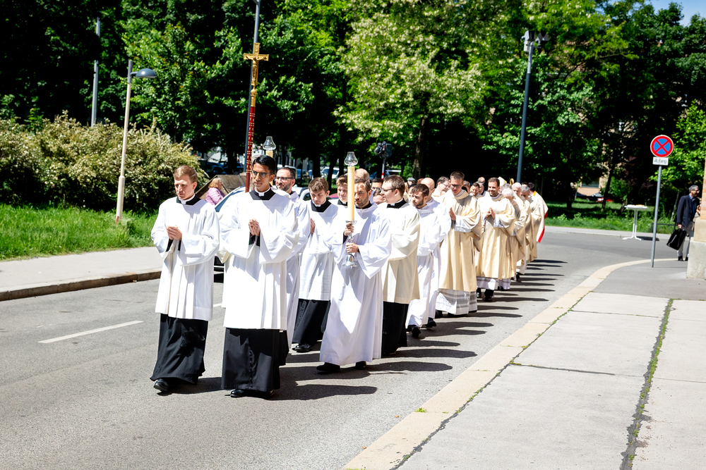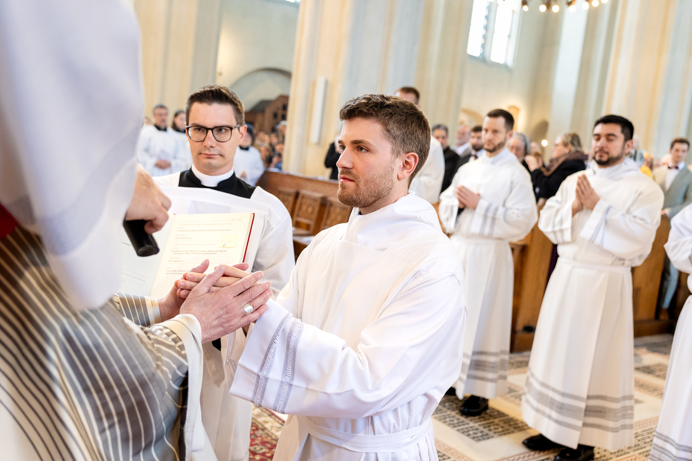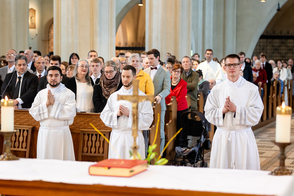 Am 10. Mai weihte Weihbischof Franz Scharl in der Pfarrkirche St. Leopold Donaufeld sieben Männer zu Diakonen für die Erzdiözese Wien. Die Kandidaten kommen aus verschiedenen Gemeinschaften: drei aus dem Wiener Priesterseminar, einer aus dem Benediktinerpriorat St. Josef in Maria Roggendorf und drei aus dem diözesanen Missionskolleg „Redemptoris Mater". Manuel Rennhofer, Joachim Loshehand und Julius Moses Münzer kommen aus dem Wiener Priesterseminar, P. Leo Maria Zehetgruber gehört dem Benediktinerpriorat St. Josef in Maria Roggendorf an drei weitere Kandidaten stammen aus dem diözesanen Missionskolleg „Redemptoris Mater“. Diese Vielfalt unterstreicht die Breite der geistlichen Berufungen in der Erzdiözese. Wir waren mit der Kamera dabei.
