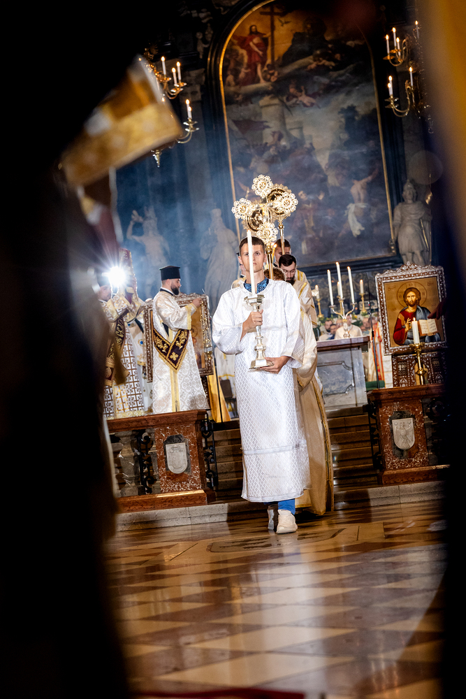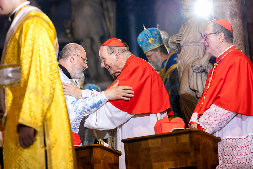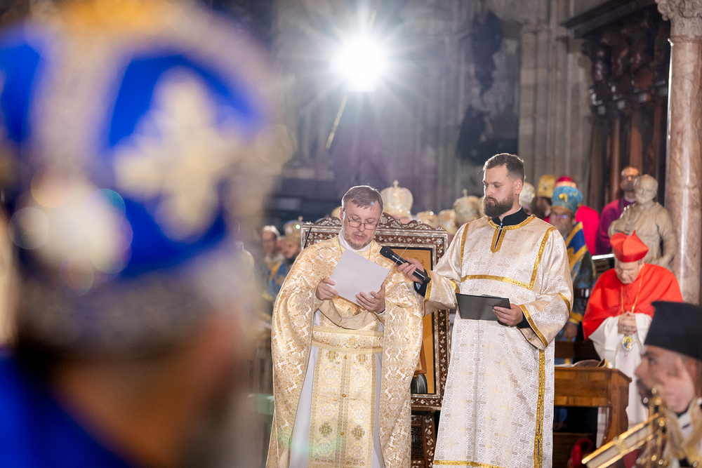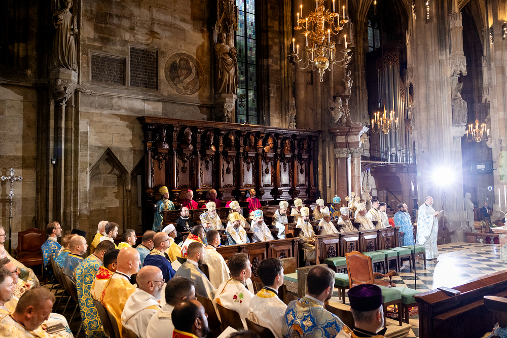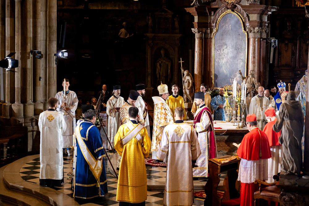 Gottesdienst im byzantinischen Ritus war Mittwochabend liturgischer Höhepunkt der Wiener Vollversammlung der Bischöfe der katholischen Ostkirchen Europas - Kardinal Schönborn in Predigt: "In der Liturgie sind wir ganz besonders mit dem Himmel verbunden", gerade in Zeiten des Krieges und der Not. Wir waren mit der Kamera dabei.